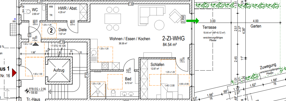 - 19,4 qm Terrasse mit Garten